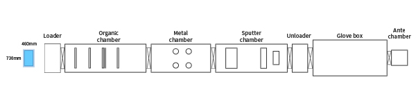 - 선형 증발원 증착 방식(유기물 증착용 linear Source)을 통해 다양한 유기소재 증착 가능
